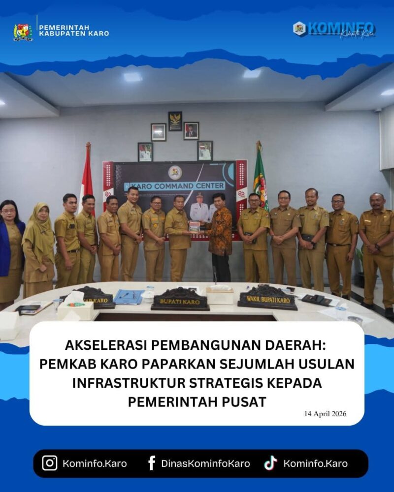 KARO – Dalam upaya mempercepat pemerataan pembangunan dan mengatasi kendala konektivitas wilayah, Pemerintah Kabupaten Karo menggelar Rapat Monitoring dan Evaluasi (Monev) Usulan Infrastruktur secara daring pada Selasa (14/04/2026).