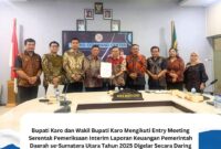 Kabanjahe – Bupati Karo, Brigjen Pol (Purn) Dr. dr. Antonius Ginting, Sp.OG., M.Kes., dan Wakil Bupati Karo, Komando Tarigan, S.P., mengikuti kegiatan entry meeting…
