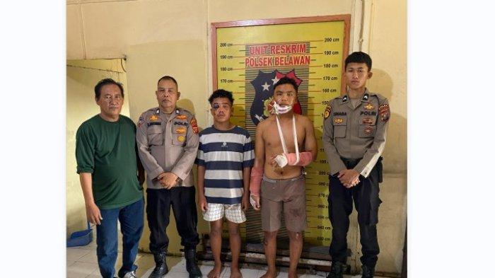 “Yohanes Sinaga alias Anes mengalami luka tusuk pada pinggang sebelah kiri, luka tusuk pada dagu, dan kedua pergelangan tangannya patah. Sedangkan pelaku Iwan Pangestu Pakpahan alias Iwan mengalami luka memar cukup parah pada mata sebelah kiri,” ujar AKBP Wahyudi Rahman, Sabtu (7/6/2025).