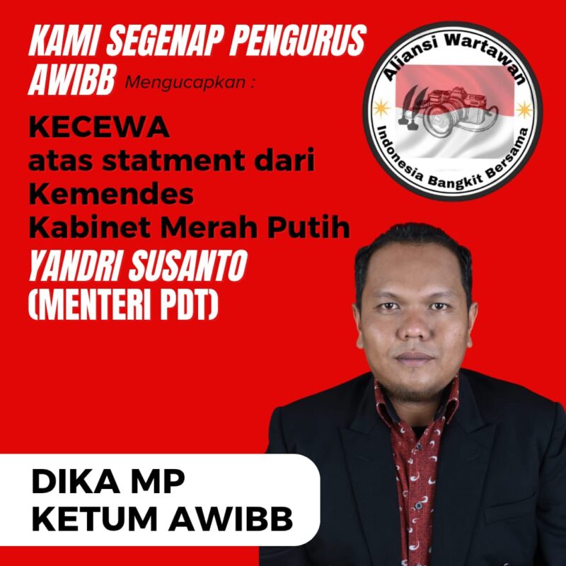 “Saya sangat tersinggung dengan kalimat, “WARTAWAN BODREX” yang dilontarkan bapak menteri PMD, seharusnya bapak menteri PMD yang terhormat tersebut dalam video dapat mengucapkannya menjadi “OKNUM WARTAWAN,” Ucap Ketum AWIBB yang akrab di sapa bang Dika.