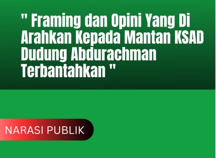 isu soal tuduhan terhadap Kepala Staf Angkatan Darat (KSAD) 2021-2023 Jenderal (Purn) Dudung Abdurachman ini merupakan rekayasa yang tidak akurat, dan tidak benar adanya, atau didorong oleh agenda tertentu, hal itu dapat merugikan individu pak Dudung dan keluarga yang saat ini di berikan amanah oleh presiden Prabowo sebagai penasehat ahli pertahanan,