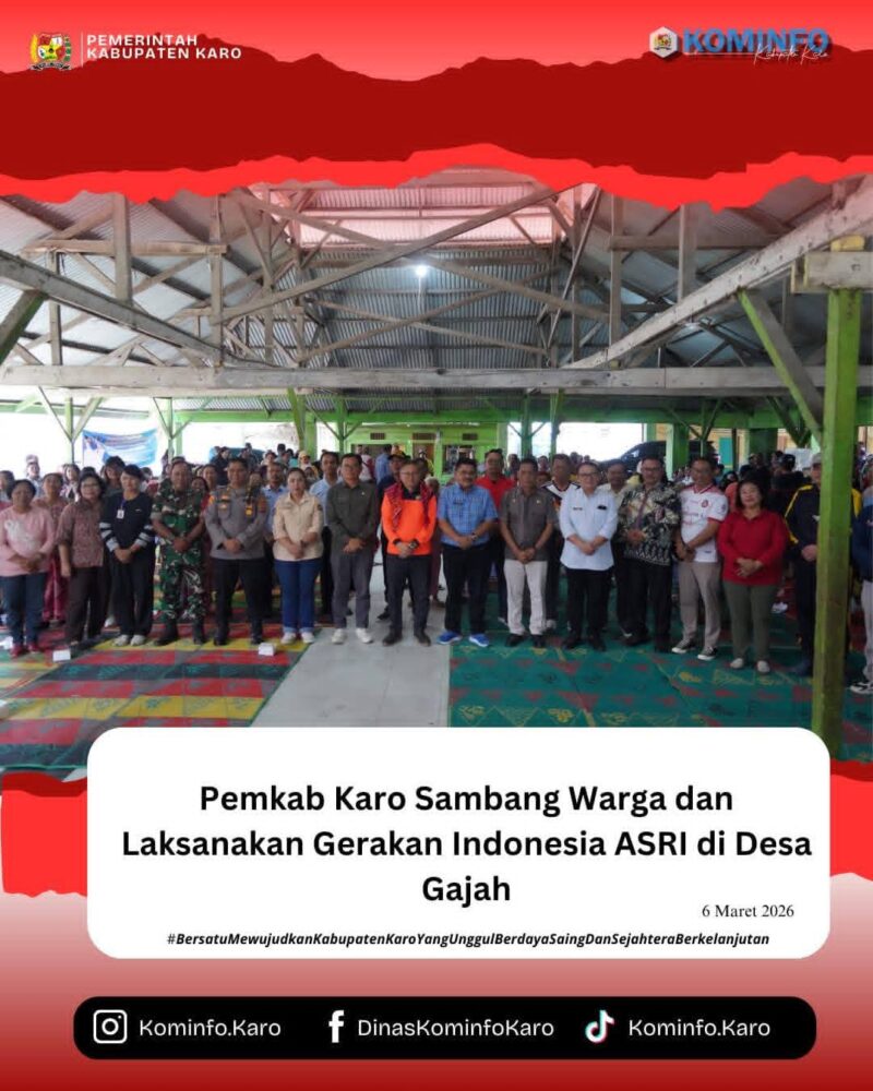 Desa Gajah – Bupati Karo, Brigjen Pol (Purn) Dr. dr. Antonius Ginting, Sp.OG., M.Kes., di wakili Wakil Bupati Karo, Komando Tarigan, S.P, melaksanakan kegiatan Sambang Warga sekaligus Gerakan Indonesia ASRI (Aman, Sehat, Resik, dan Indah) di Losd Desa Gajah, Kecamatan Simpang Empat, Jumat (06/03/2026).