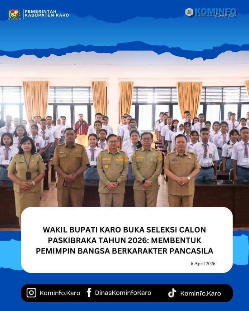 KABANJAHE – Bupati Karo, Brigjen Pol (Purn) Dr. dr. Antonius Ginting, Sp.OG., M.Kes, yang diwakili oleh Wakil Bupati Karo, Komando Tarigan, SP, secara resmi membuka kegiatan Seleksi Calon Pasukan Pengibar Bendera Pusaka (Paskibraka) Kabupaten Karo Tahun 2026.